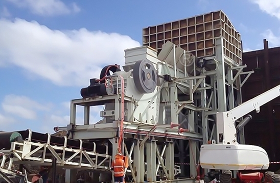 青石進入儲物箱后,被振蕩喂料機均勻地攪拌,然后被喂入顎式破碎機中,將大的青石磨成30-50毫米的小石塊。然后通過振蕩給料機篩分一起送至中間物料堆。